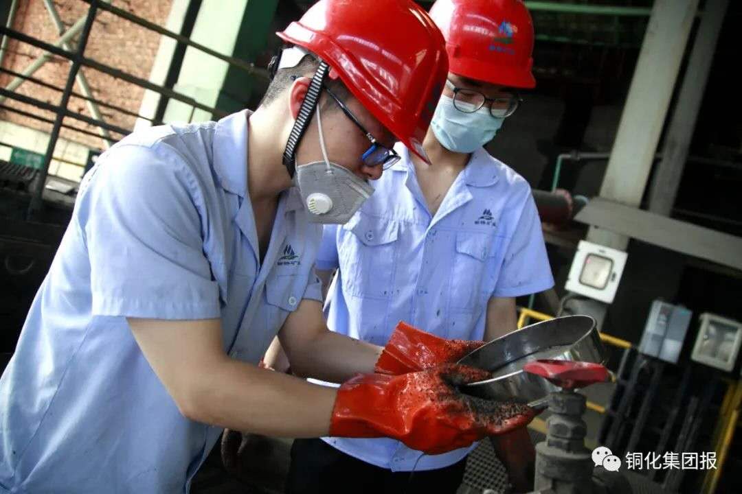 圖②:青工在監(jiān)測(cè)礦漿濃細(xì)度。