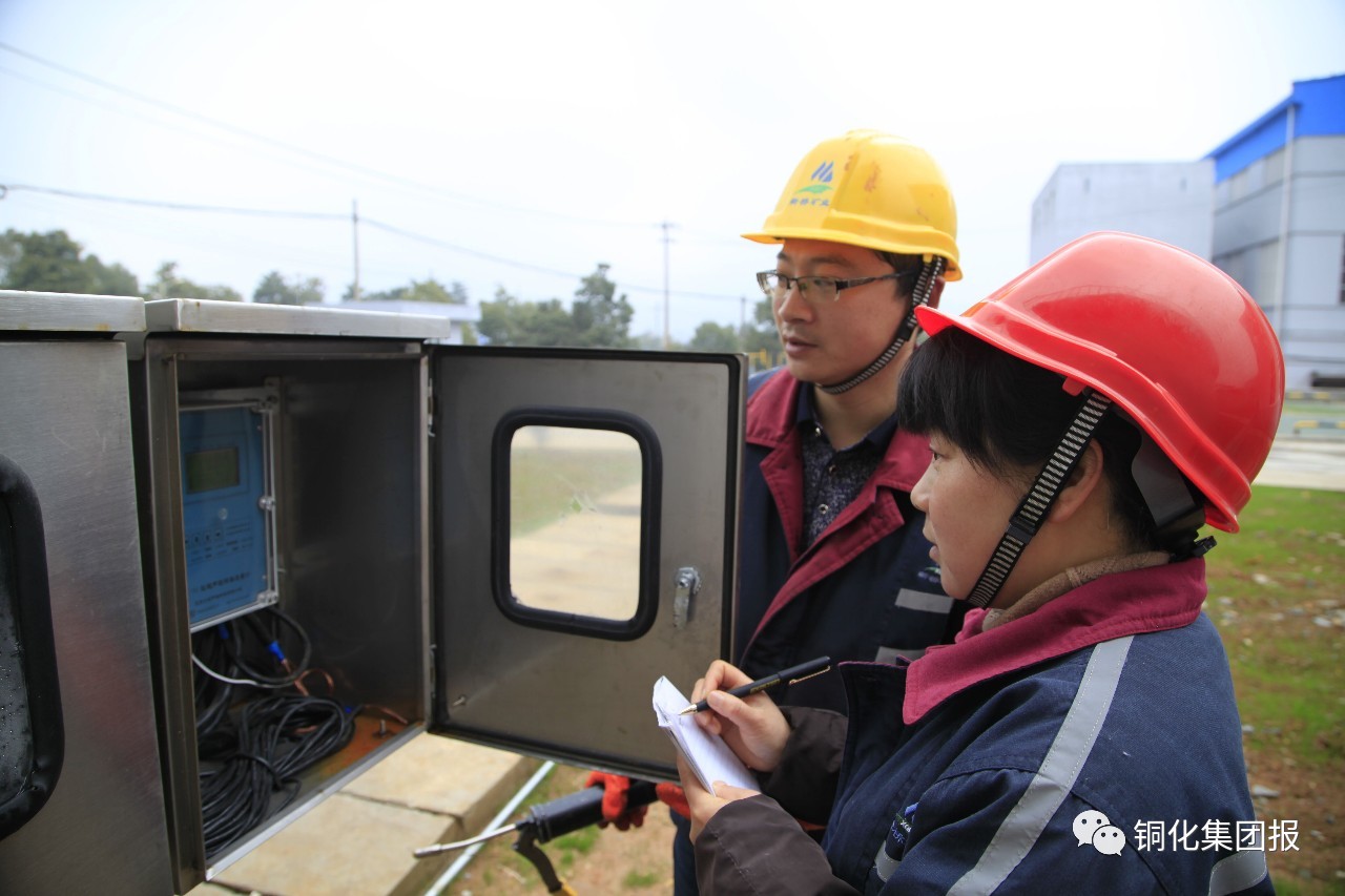 / 近日,新橋礦業(yè)公司技改擴(kuò)建后的污水處理新系統(tǒng)明渠流量計(jì)柜前,兩名員工正在觀察記錄外排水流量。